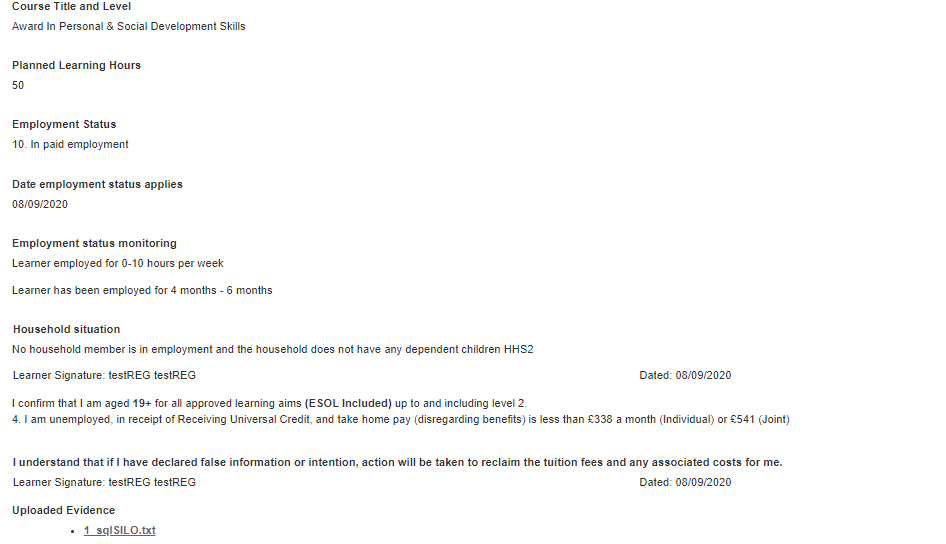 - WHAT HAPPENS NEXT? A summary form is sent over to the Learner who digitally signs the form and it is electronically returned (i.e. the status of the report changes to Signed by Leaner)
