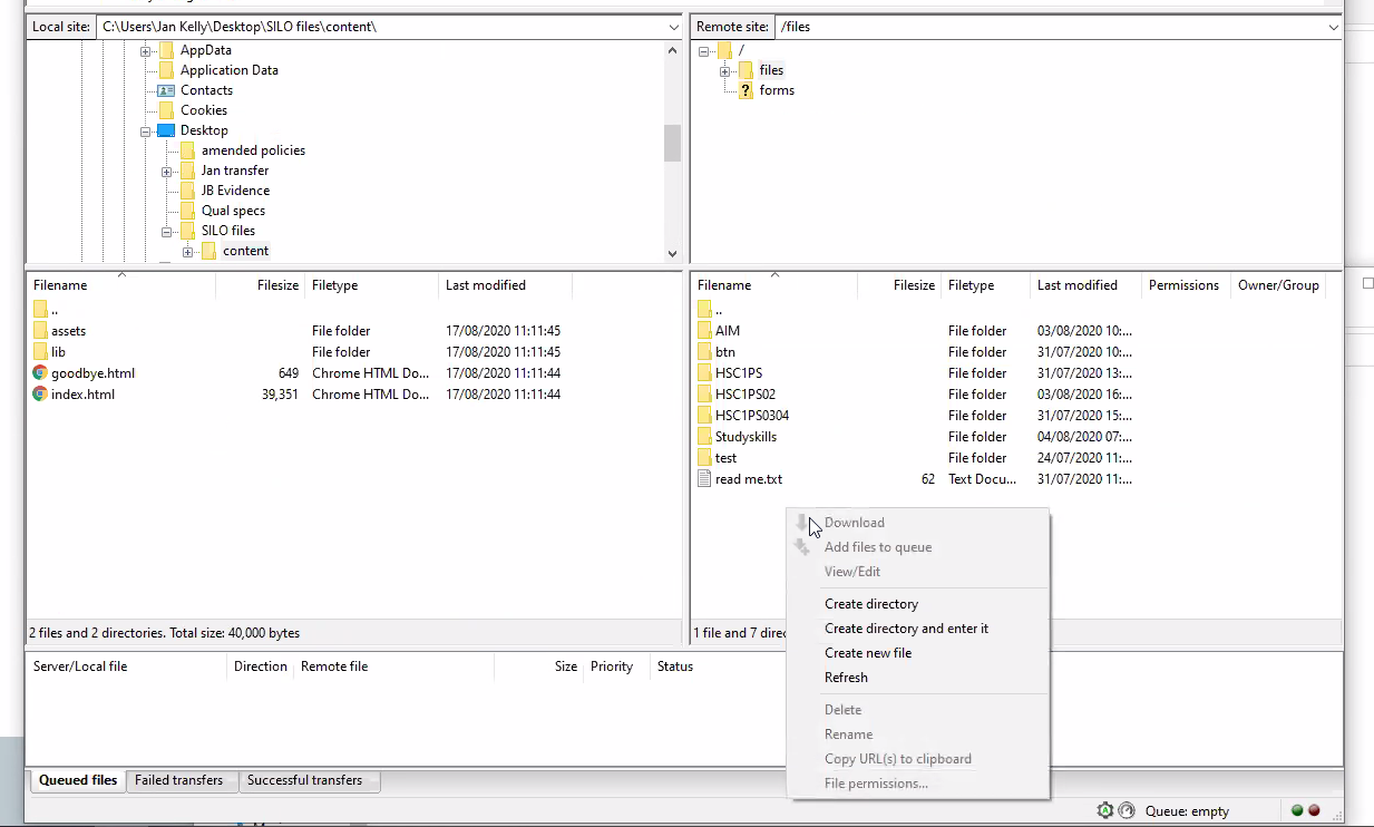 Select the Files directory and add a new folder (directory) with the name for this course. e.g.