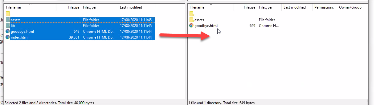 Select all of the files in the bottom left window and drag them to the bottom right window.