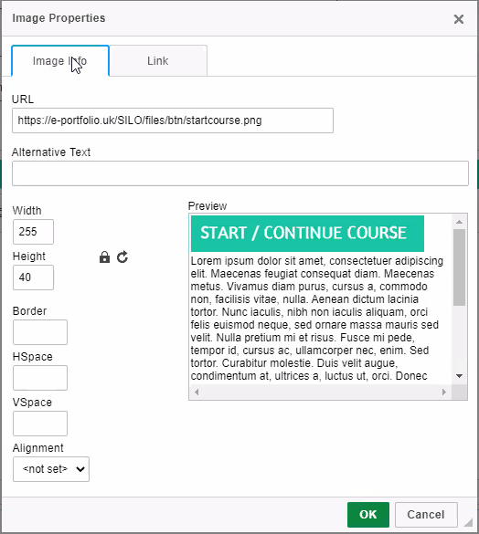 add the image URL = https://e-portfolio.uk/SILO/files/btn/startcourse.png